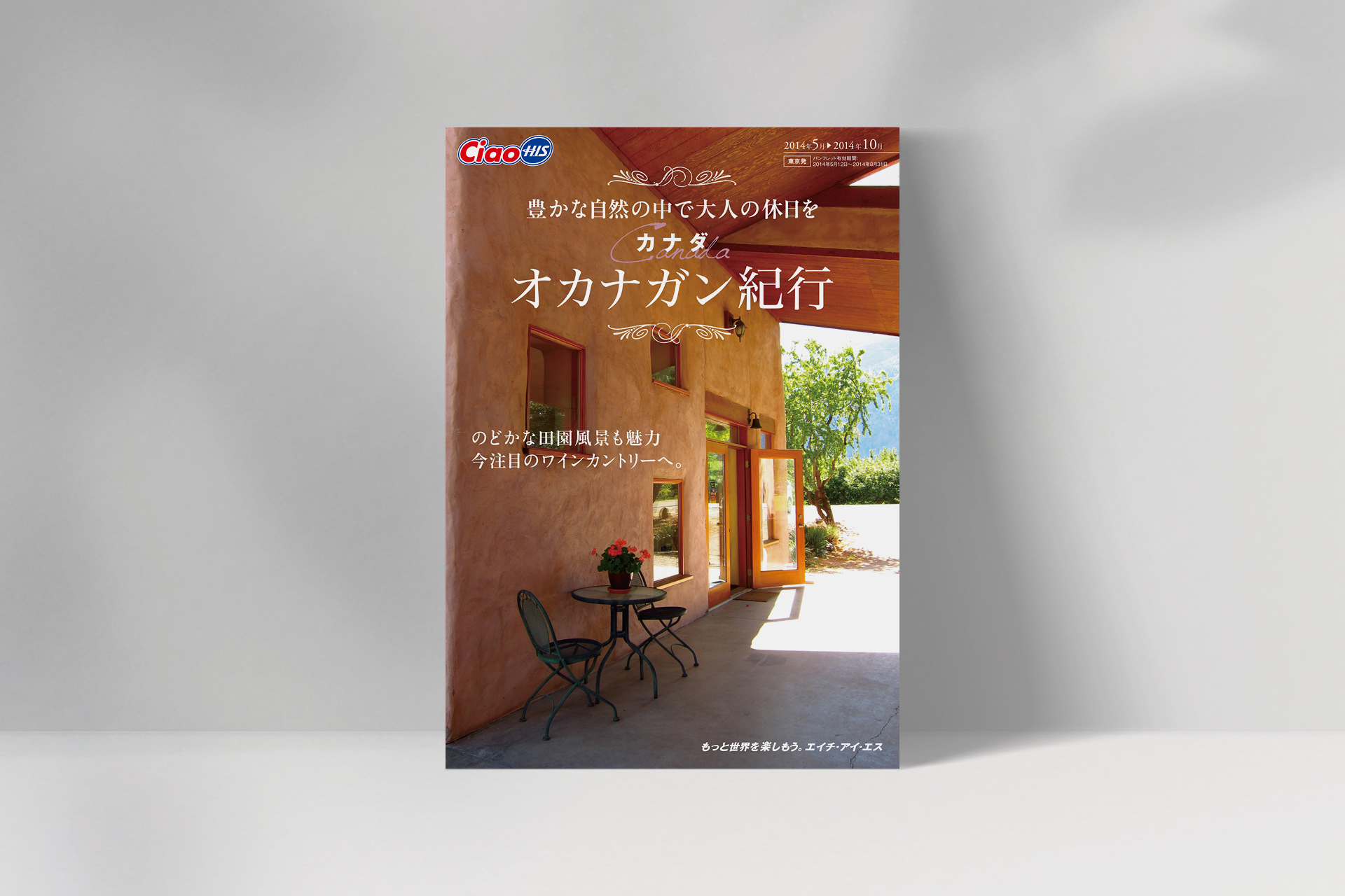 ワインファームの多いカナダのオカナガンへ行くパンフレット。農場といっても洗練された雰囲気のファームが多いので、カントリーシックな雰囲気に仕上げました。