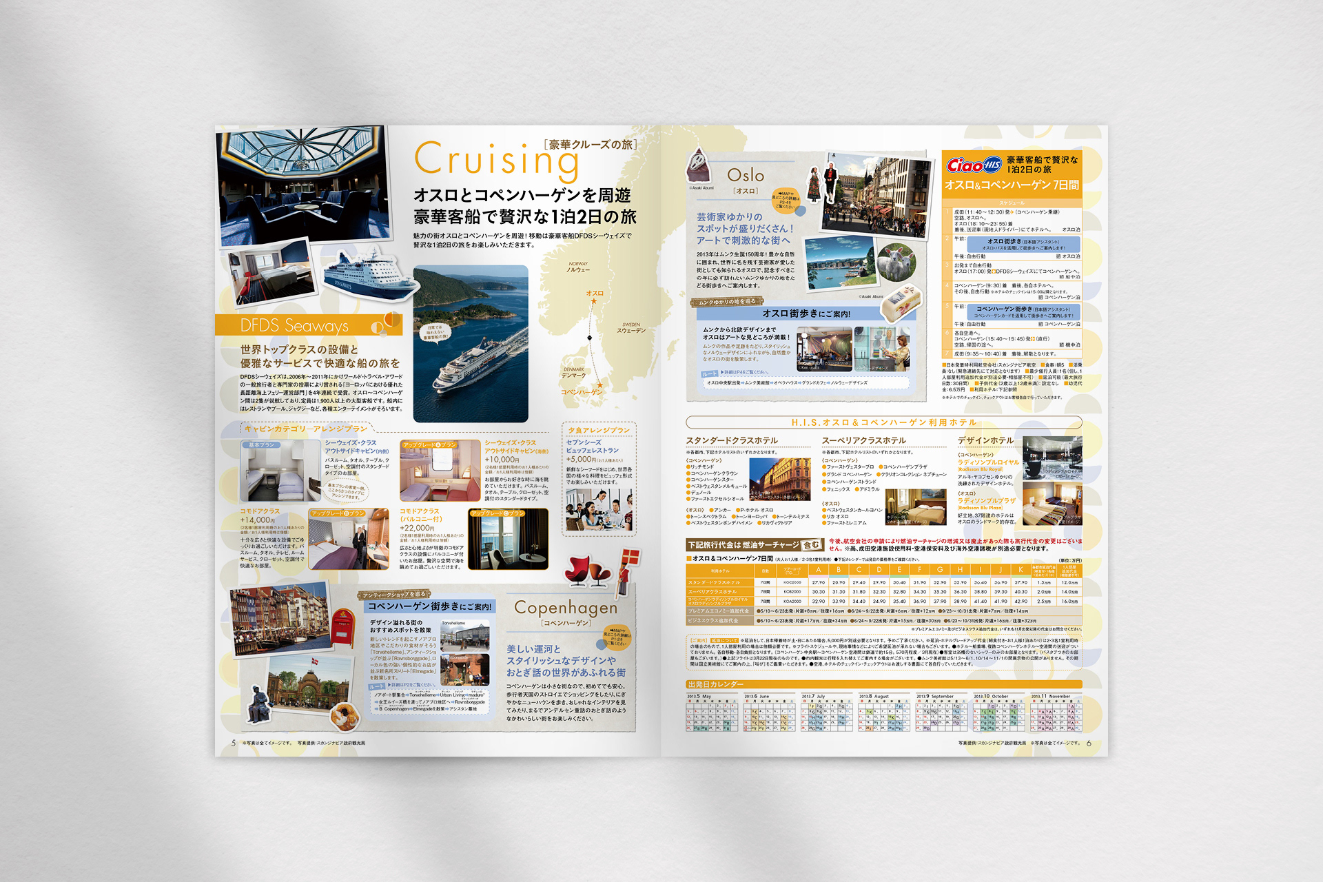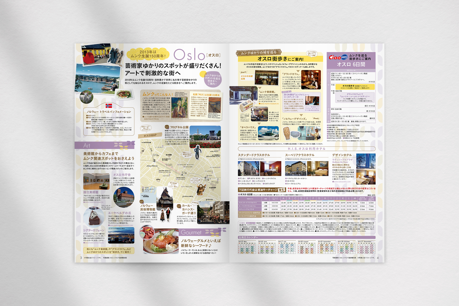 パンフレット全体に北欧パターンをふんだんにあしらい、カジュアルで大人可愛いイメージに。切り抜き写真などで動きをつけ、色もあえて多めに使い楽しそうな雰囲気に仕上げました。丸の内エリアの女性に人気となったツアー。